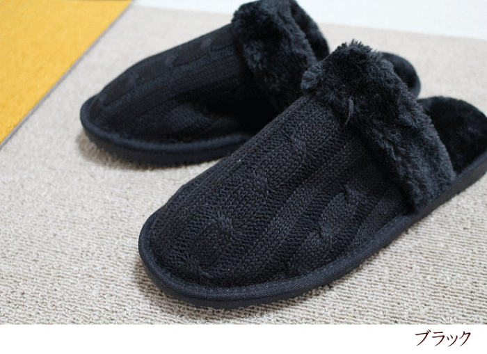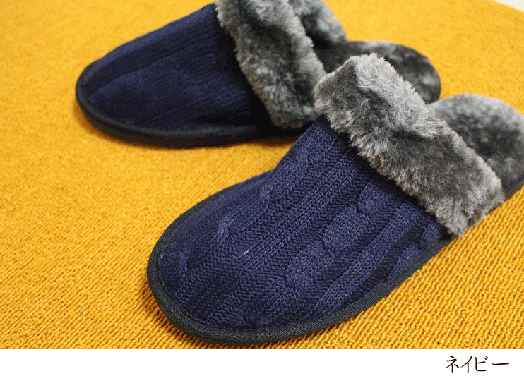メンズ ルームシューズ 防寒 オフィス履き 室内履き 事務所履き スリッパ 靴 暖か ニット ボア裏 ゴム底 966 ブラック ネイビー ベージュ 黒 紺 25cm 26cm 27cm【あす楽対応_北陸】