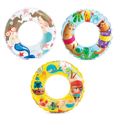 浮き輪 子供 61センチ 子供用 浮輪 幼児 小学生 キッズ浮き輪の表面(上側)は透明な生地にかわいい絵がプリント。